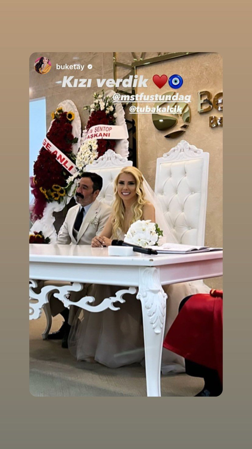 Ünlü çiftin Beykoz Belediyesi’nde kıyılan nikah törenine Buket Aydın, Esra Ezmeci gibi isimler katıldı. Buket Aydın ve Esra Ezmeci sosyal medya hesabından yaptıkları paylaşımla Mustafa Üstündağ ve Tuba Kalçık’ı tebrik etti.