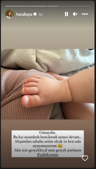 Kaya, Instagram sayfasında paylaştığı fotoğrafın altına "Günaydın... bu kız uyandırdı beni, kendi uyuyor devam. Akşamdan sabaha setim olacak ve ben asla uyuyamıyorum. Alın size gerçekler, al sana gerçek paylaşım" notunu düştü. Kaya, sıfır makyaj fotoğrafını da "Bu da ben" diyerek paylaştı.