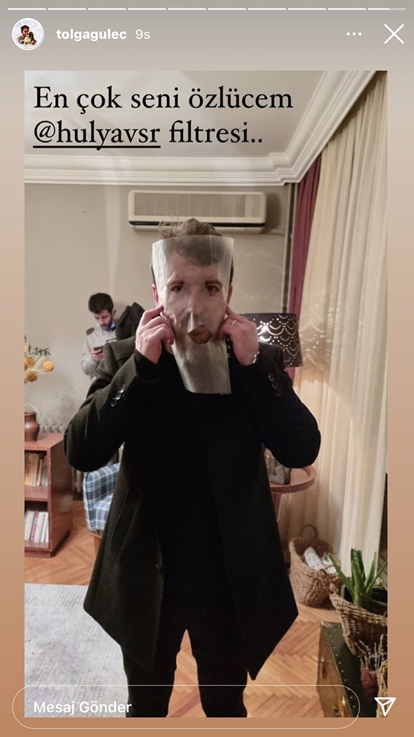 Güleç, Hülya Avşar'ın yüzüne filtre kullanıldığı bölümlere işaret ederek yüzüne tuttuğu kağıtla rol arkadaşını tiye aldı. Ünlü oyuncu, kısa sürede gündem olan esprili paylaşımının altına ise "En çok seni özleyeceğim Hülya Avşar filtresi" notunu ekledi.