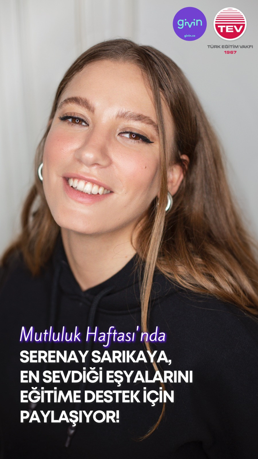 Serenay Sarıkaya, en sevdiği eşyalarını Türk Eğitim Vakfı (TEV) yararına bağışa dönüştürüyor. Mutluluk Haftası’na özel Givin.co web sitesinde bağışa dönüştürülen Sarıkaya’nın kıyafetleri, henüz birinci gününde 29 genç kızın eğitim bursunu destekledi.