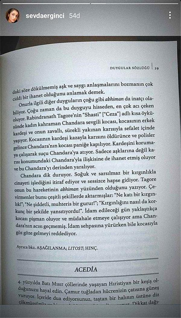 Oyuncunun paylaştığı kitap fotoğraflarında, "İhanet ve kırgınlık" gibi kelimeler ve Kunt'a gönderme olarak yorumlandı.