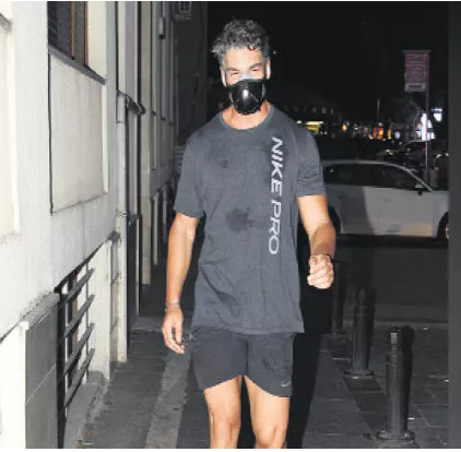 Tempolu yürüyüş yapan oyuncu yüzündeki maskeyle dikkat çekti. Özyıldız; “Maske ile yürüyerek diyafram çalışıyorum.” dedi.