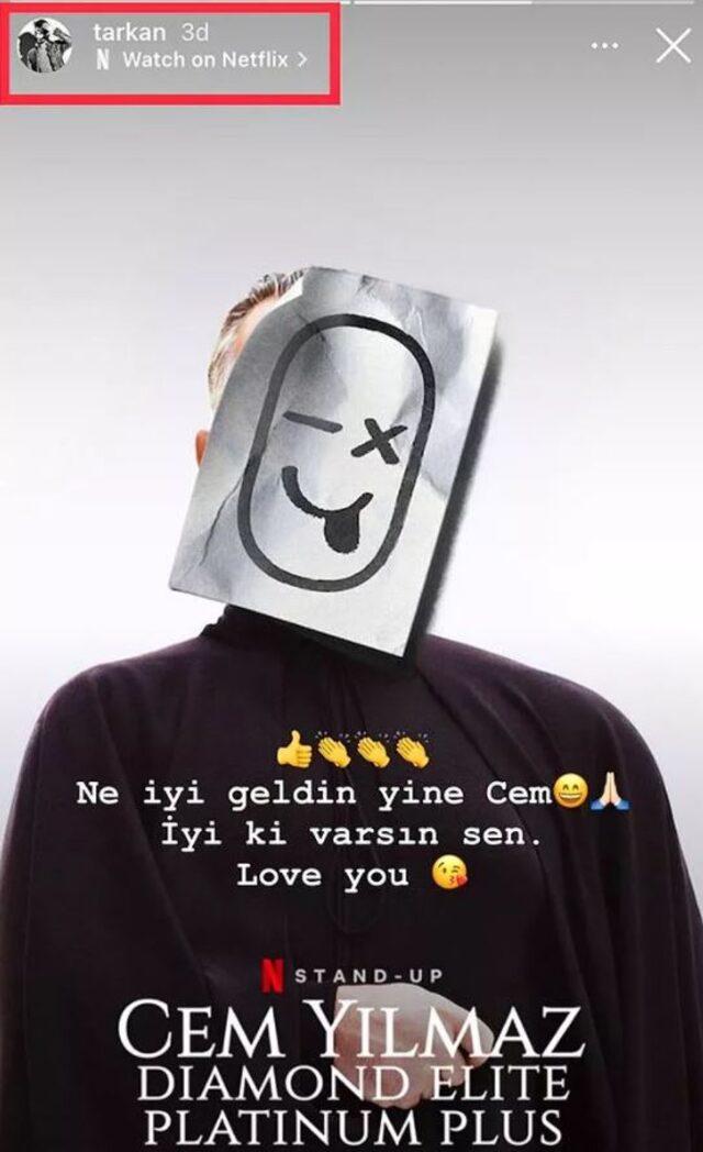 Instagram hikayeler bölümünden bir paylaşım yapan Tarkan, ünlü komedyene "Ne iyi geldin yine Cem. İyi ki varsın sen. Love you" diyerek seslendi.