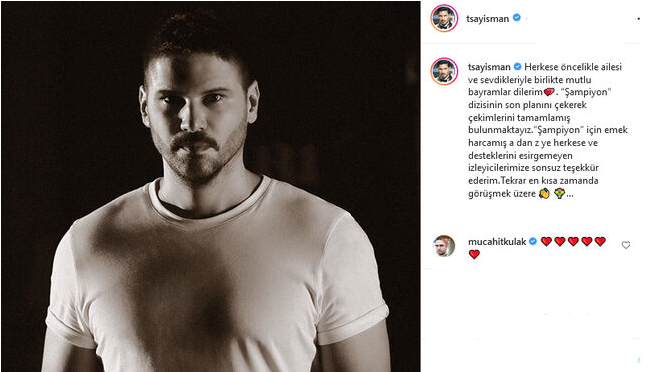 TRT 1'in dizisi Şampiyon'un başrol oyuncusu Tolgahan Sayışman Instagram hesabından hayranlarına veda mesajı yayınladı.