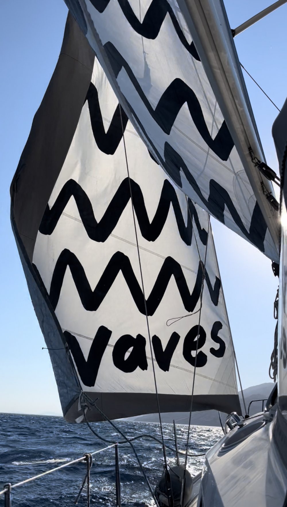 Türkiye’deki ilk sergisi ‘Duygularımda Oynama’ ile sanatseverlerin ilgisini çeken Berlin’de yaşayan başarılı sanatçı Esra Gülmen; Burcu Kuş ve Yasemin Şefik’in seyirine destek için yelkenliye özel bir çalışma yaptı. Gülmen’in yelken üzerinde tasarladığı “Waves” (dalgalar) yazılı eser seyrin dikkat çekici detaylarından birini oluşturuyor.