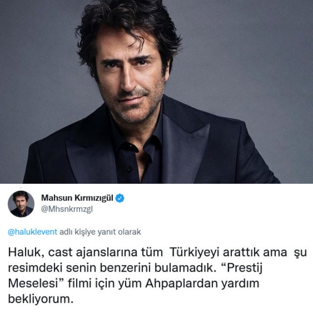Kırmızıgül, Twitter hesabından "Haluk, cast ajanslarına tüm Türkiyeyi arattık ama şu resimdeki senin benzerini bulamadık. 'Prestij Meselesi' filmi için tüm Ahbaplardan yardım bekliyorum." mesajını paylaştı.