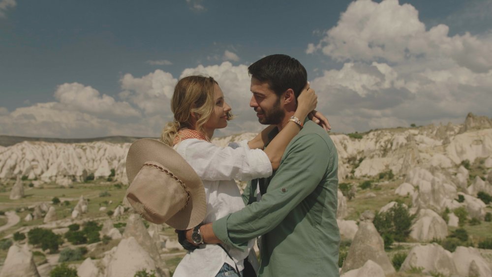 Maria annesi Kolombiyalı, babası Türk bir genç kadın, Mustafa ise Ürgüplü Candemir Ailesi’nin babasının sözünden hiç çıkmayan oğlu. Maria rahmetli babasının arazilerini satıp Kolombiya’ya dönmek için Ürgüp’e gitmek isterken Mustafa’nın taksisine binip havalimanına gidiyor. Tesadüf eseri Mustafa uçakta yanına oturuyor. Uçağın türbülansa girmesiyle Maria Mustafa’nın sol kolunu sıkmaktan mahvediyor. O arada nasıl ayrıldılar bilmiyoruz. Uçak zorunlu iniş yapınca Mustafa küçücük havalimanında araç kiralayıp Ürgüp’e gidecekken, araç kiralama şirketinde çalışan kişi Maria’yı da Mustafa’nın arabasına binmesi için motive ederek peşinden yolluyor. Maria Mustafa’nın arabasına zorla binip sonra da onu “Bana zarar verirsen” diye tehdit etmeye başlıyor. Buraya kadar bence sorun yok. Eğer bir romantik komedi izliyorsak her şey olması gerektiği gibi işliyor. Dramada ise gerekli olan başka şey!