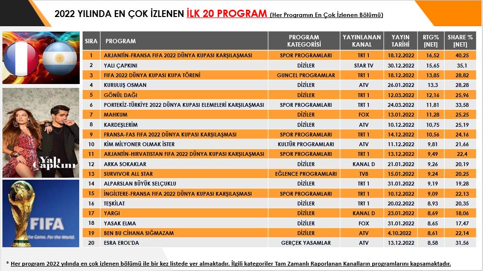 TİAK Televizyon İzleyici Ölçümü İzleme Davranışları 2022 Yılına Genel Bakış raporu yayınlandı. Buna göre Star TV'nin reyting rekorları kıran dizisi Yalı Çapkını yılın en çok izlenen dizisi oldu.