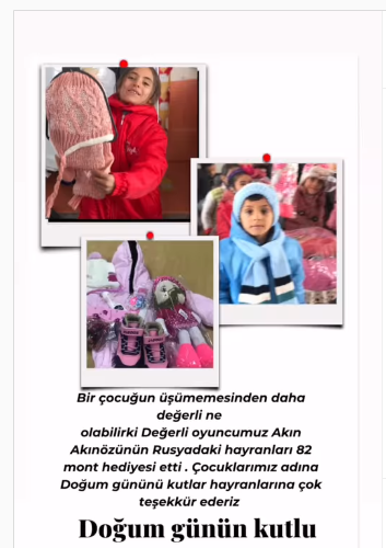 Rusya'daki sevenleri, oyuncunun annesi Özlem Akınözü'nün de kurucuları arasında olduğu Hayır Kapısı Derneği'ne yardımda bulundu. Akın Akınözü'nün doğum günü şerefine İhtiyacı olan çocuklar için 82 tane mont hediye edildi.