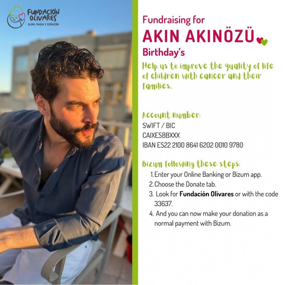 Yurt içinde olduğu kadar yurt dışında da büyük bir hayran kitlesine sahip Akınözü'nün İspanyol hayranları, o özel gün için kanser hastası çocukların yaşam şartlarının iyileştirilmesi amacıyla İspanya'daki Fundacion Olivares Derneği'ne bağış kampanyası düzenledi.