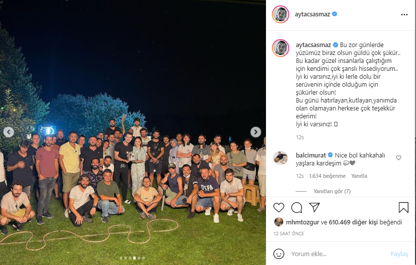 Hep birlikte pasta kesilen kutlamadan kareleri sosyal medya hesabından paylaşan Şaşmaz "Bu zor günlerde yüzümüz biraz olsun güldü çok şükür.. Bu kadar güzel insanlarla çalıştığım için kendimi çok şanslı hissediyorum.. İyi ki varsınız,iyi ki lerle dolu bir serüvenin içinde olduğum için şükürler olsun! Bu günü hatırlayan,kutlayan,yanımda olan olamayan herkese çok teşekkür ederim!" ifadelerini kullandı.