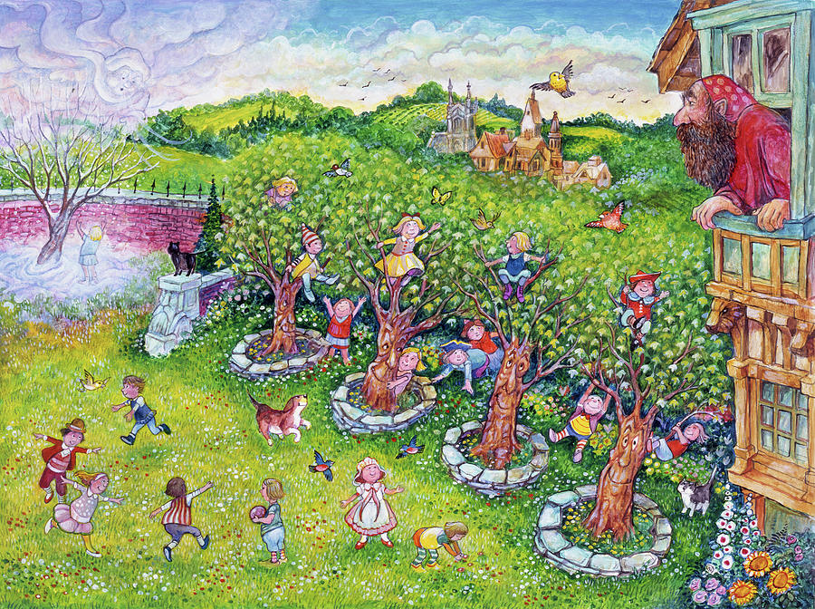İlkbaharda pembeli incili çiçekler açıp, güzel bol bol meyve veren on iki de şeftali ağacı vardı. Kuşlar ağaçlara dizilir, tatlı tatlı öyle öterlerdi ki çocuklar dinlemek için oyunlarını bırakırlardı. Birbirlerine, "Burada ne kadar eğleniyoruz!" diye bağrışırlardı.