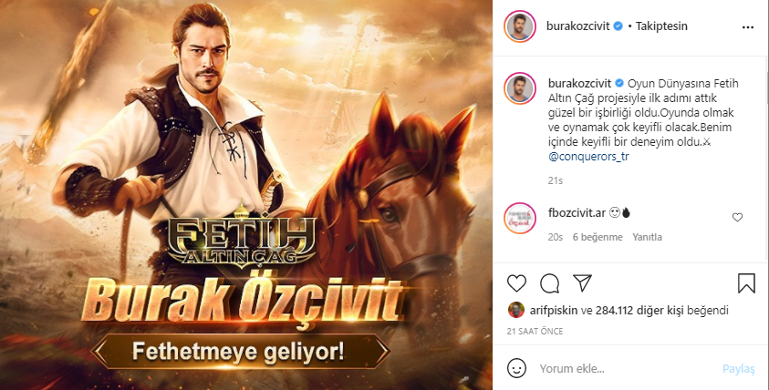 Son olarak Kuruluş Osman dizisinde rol alan Burak Özçivit, bu defa oyun dünyasına katıldı. Kariyerinde bir ilke imza atan oyuncu bu kez sanal oyun projesinde kendinden esinlenerek yapılan karakterle dünyayı fethedecek.