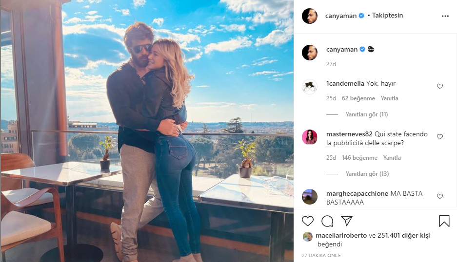 Attıkları her adım takip edilen ünlü çift, son olarak Milano sokaklarında el ele görüntülenmişlerdi. İtalyan basınına göre büyük aşk tüm hızıyla ilerliyor, Can Yaman bugün Instagram hesabından Leotta'yla bir fotoğrafını paylaştı.