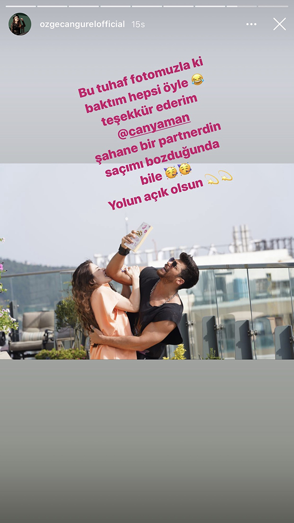 Özge Gürel Instagram hesabından yaptığı paylaşımla partneri Can Yaman'a veda etti. Birlikte bir fotoğraflarını paylaşan Gürel, "Bu tuhaf fotomuzla ki baktım hepsi öyle :) teşekkür ederim Can Yaman, şahane bir partnerdin, saçımı bozduğunda bile, yolun açık olsun" notunu düştü.