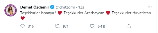 Yangınla mücadeleye Türk ekiplerin yanı sıra Rusya, İran, Ukrayna, Azerbaycan, İspanya ve Hırvatistan gelen uzmanlar da katılıyor. Bazı ünlü isimlerin dış güçlerden yardım istenmesine tepki göstermesi üzerine çok sayıda polemik yaşanan sosyal medyada Demet Özdemir ise her zamanki duyarlılığını gösterdi.