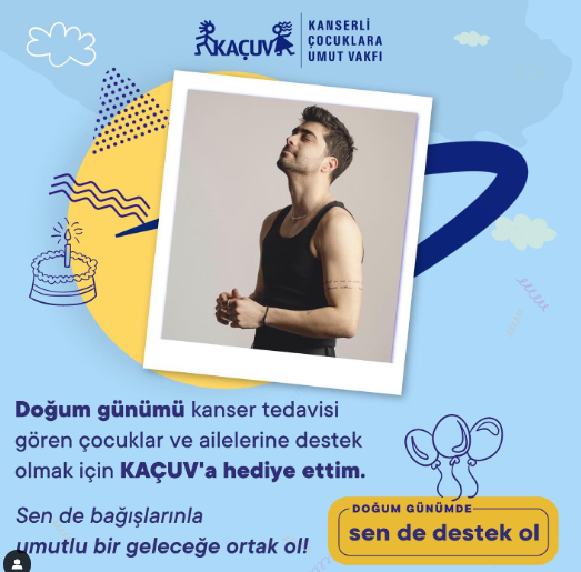 KAÇUV, kanser tedavisi için şehir dışından İstanbul’a gelen maddi olarak dezavantajlı çocuklara ve ailelerine ücretsiz konaklama, psikolojik ve psiko-sosyal destek hizmetleri sunan Aile Evleri kuruyor. Bu doğum günümde bana vereceğiniz en anlamlı hediye de kampanyama yapacağınız bağışlar ile Aile Evlerinde bir ailenin konaklayabileceği odanın masraflarını karşılamak olacak.