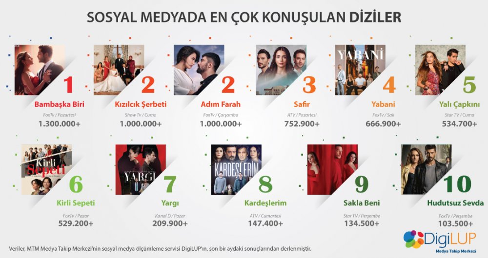 Digilup tarafından yapılan sosyal medya araştırmasına göre, dizilerin kasım ayında sosyal medyadaki sıralaması belli oldu.