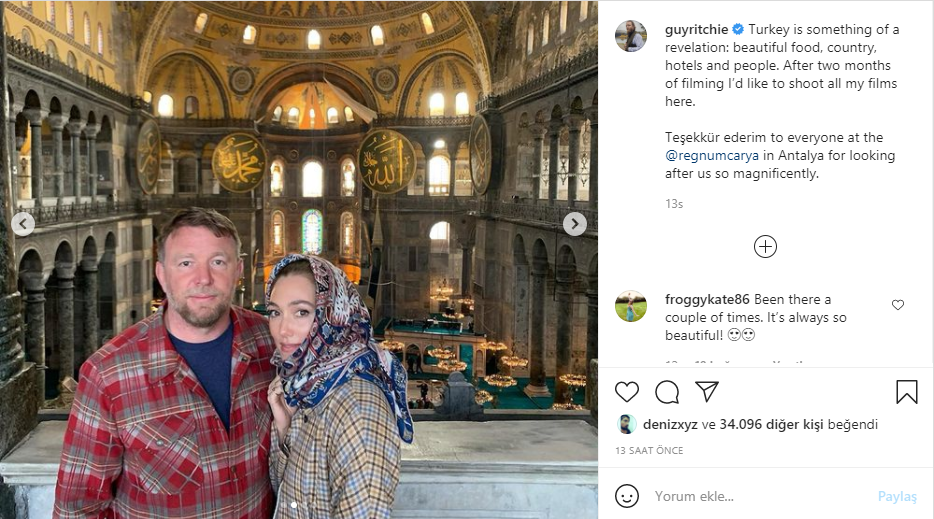 Filmin kamera arkası görüntülerinin yer aldığı gönderide, Türkiye'nin yemeklerinin, insanlarının, şehirlerinin güzelliğinden bahseden Ritchie "İki aylık çekimlerden sonra tüm filmlerimi burada çekmek istiyorum." dedi.