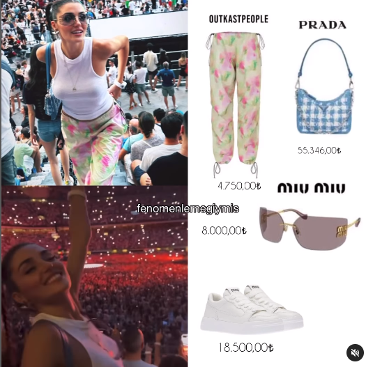 Ünlü ismin konser şıklığının bedeli belli oldu. fenomenlernegiymiş hesabının aktardığına göre Hande Erçel'in taktığı çantanın fiyatı 55.346.00 TL ayakkabısı 18.500.00 TL, pantolonu 4.750.000 TL ve gözlüğü 8.000.00 TL
