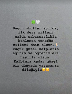 Oyuncu sosyal medya hesabından okulların açılmasıyla ilgili güzel dileklerde bulundu. Sancaktutan, "Kalbiniz kadar güzel bir dünya yaşamanız dileğiyle" ifadelerini kullandı.