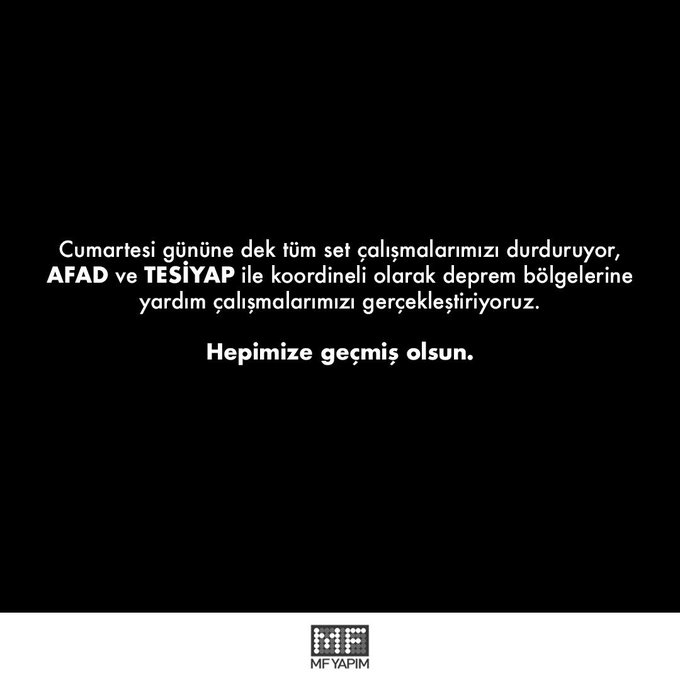 MF Yapım cumartesi gününe dek tüm set çalışmalarını durdurduğunu açıkladı.