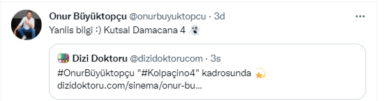 Büyüktopçu, bilginin yanlış olduğunu ve kendisinin yakın zamanda ‘Kutsal Damacana 4’ filminde rol alacağını belirtti.
