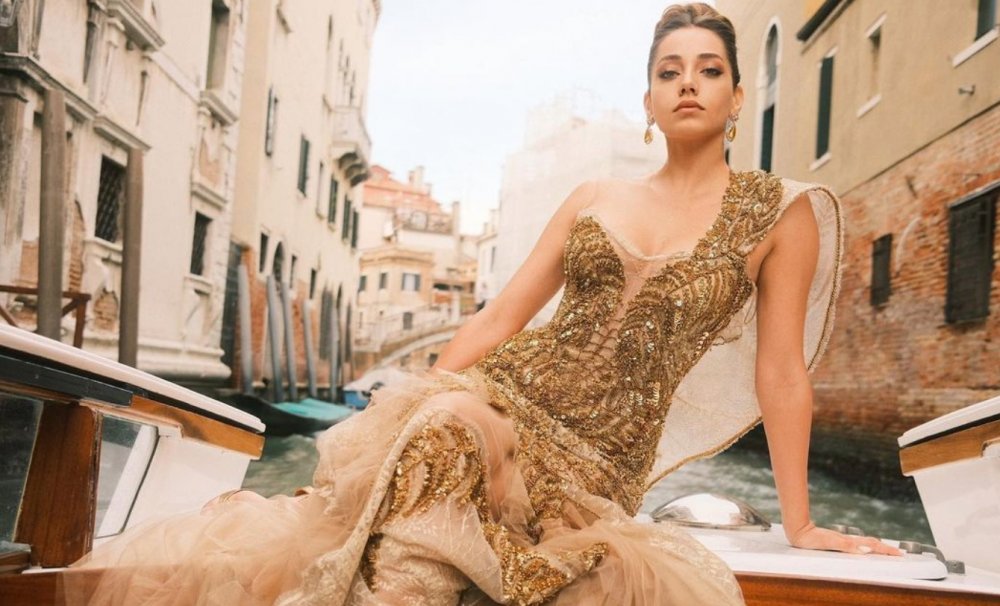 Özacar'ın Venedik Film Festivali'nde de şıklığı Kemal Arda Gürdal'a emanet. Bu kez altın tonlarında bir elbise tercih eden ünlü ismin paylaşımlarına çok sayıda yorum ve beğeni yağdı.