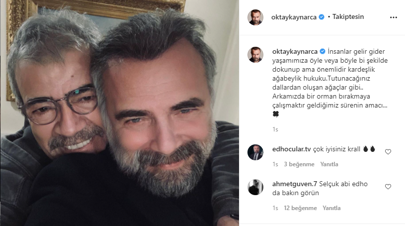 Fotoğrafa; "İnsanlar gelir gider yaşamımıza öyle veya böyle bi şekilde dokunup ama önemlidir kardeşlik ağabeylik hukuku.Tutunacağınız dallardan oluşan ağaçlar gibi.. Arkamızda bir orman bırakmaya çalışmaktır geldiğimiz sürenin amacı..." notunu düşen Kaynarca'nın paylaşımı, Yöntem'in diziye dahil olabileceği söylentisine neden oldu.