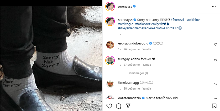 Sarıkaya gelen yorumlara karşılık verdi ve sosyal medya hesabından esprili bir paylaşım yaptı ve "Sorry not sorry" notunu düştü.