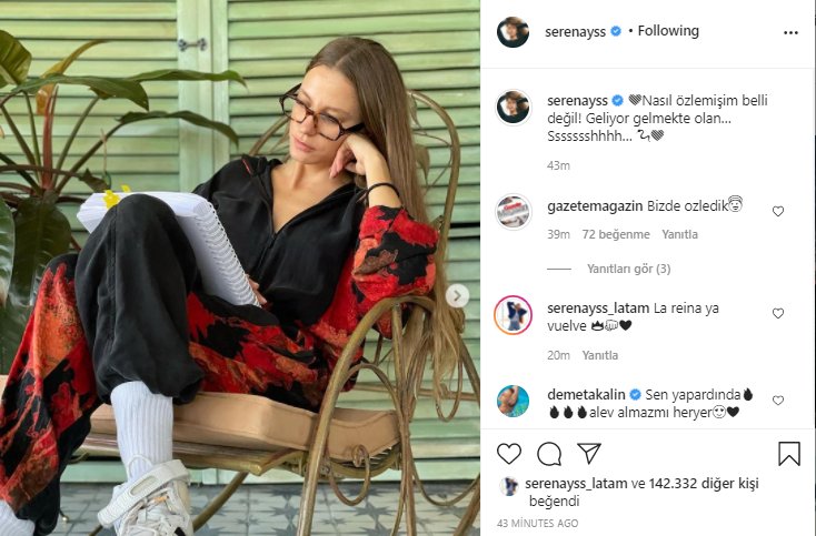 Senaryo okurken çekilmiş fotoğraflarını paylaşan oyuncu, gönderisine "Nasıl özlemişim belli değil! Geliyor gelmekte olan… Ssssssshhhh…" notunu düştü.