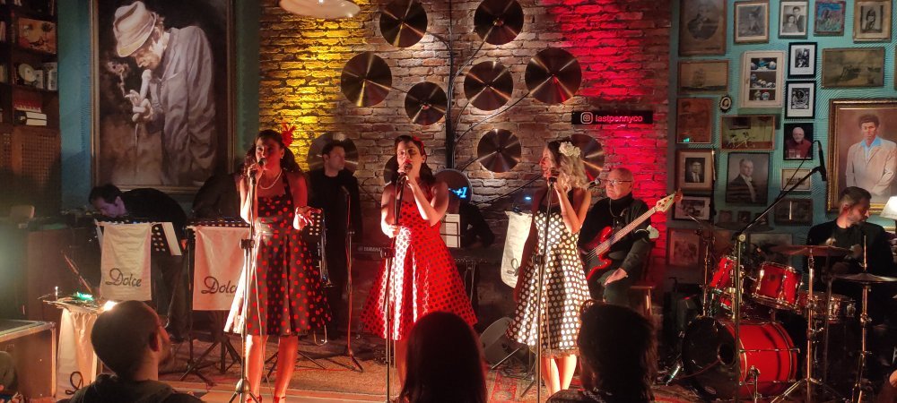 Last Penny Büklüm’de gerçekleşen “Dolce Caz Vokal Grubu” nun harika konserinde nefes aldık! Merve Erdal, Damla Güneş ve Nihan Yılmazer’den oluşan grup, adeta bizi 1900’lü yıllara doğpru ışınladı ve harika ötesi bir nostaljik caz akşamı geçirmemizi sağladı. Caz, latin ve soul müziklerin miksleriyle harika bir müzikal izletişi sunan bu üç tatlı kadın ve orkestra ekibi; Andrews Sisters şarkılarından Django Reinhardt'a kadar geniş repertuarla müziğe doyurdu bizleri. Sahne sürelerinin sonuna geldiklerinde bile grubun sahneden inmesini istemeyen izleyiciler, grubun birkaç şarkı daha sahnede olmasını sağladı. Resmen bitmesini istemediğimiz bu gece için, Ankara Caz Festivali ekibi ve Last Penny’den Mert Şahin’e sonsuz teşekkürler.