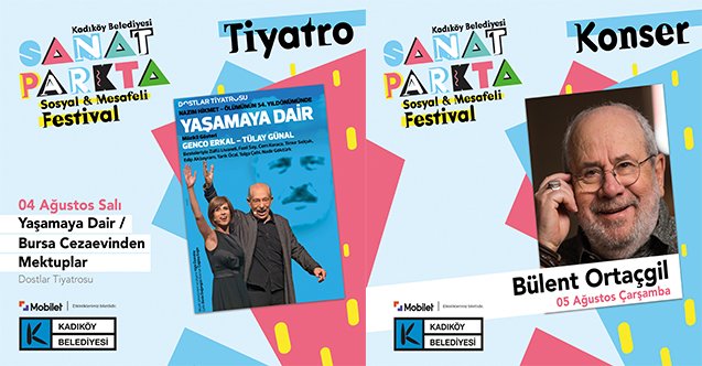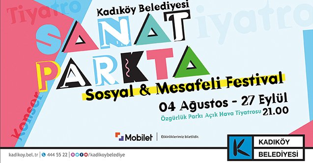 Kadıköy Belediyesi, zor zamanlardan geçen sanat dünyasına bir nebze de olsa nefes aldırmak amacıyla 4 Ağustos-27 Eylül tarihleri arasında “Sanat Parkta” adıyla bir dizi konser ve tiyatro oyunu etkinliği düzenliyor. Özgürlük Parkı Amfi Tiyatro’da 32 tiyatro oyunu ve 21 konser seyirciyle buluşacak ve tüm etkinlik geliri sanatçılara ve kurumlara bırakılacak. Pandemi koşullarına göre şartların yeniden düzenlendiği bu festival her gün 350 kişi ağırlayacak ve gerekli tüm teknik alt yapı belediye tarafından karşılanacak. Pandemi sürecinin başından beri destek arayışında olan tiyatromuz için atılmış ilk adımlardan biri olması bile çok mühim.