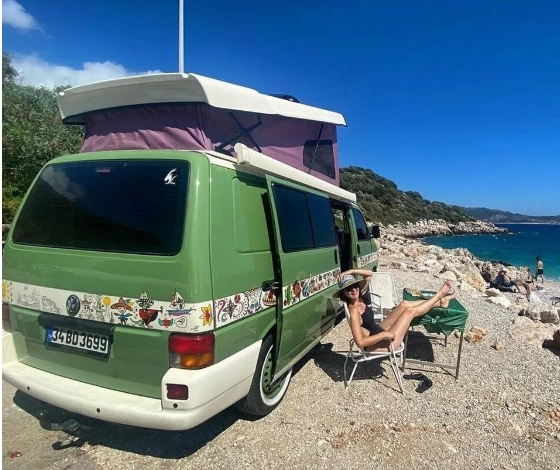 49 yaşındaki Şevval Sam iki yıl önce bir arkadaşından satın aldığı eski karavanın yenilenme süreciyle bizzat kendisi ilgilenmişti.