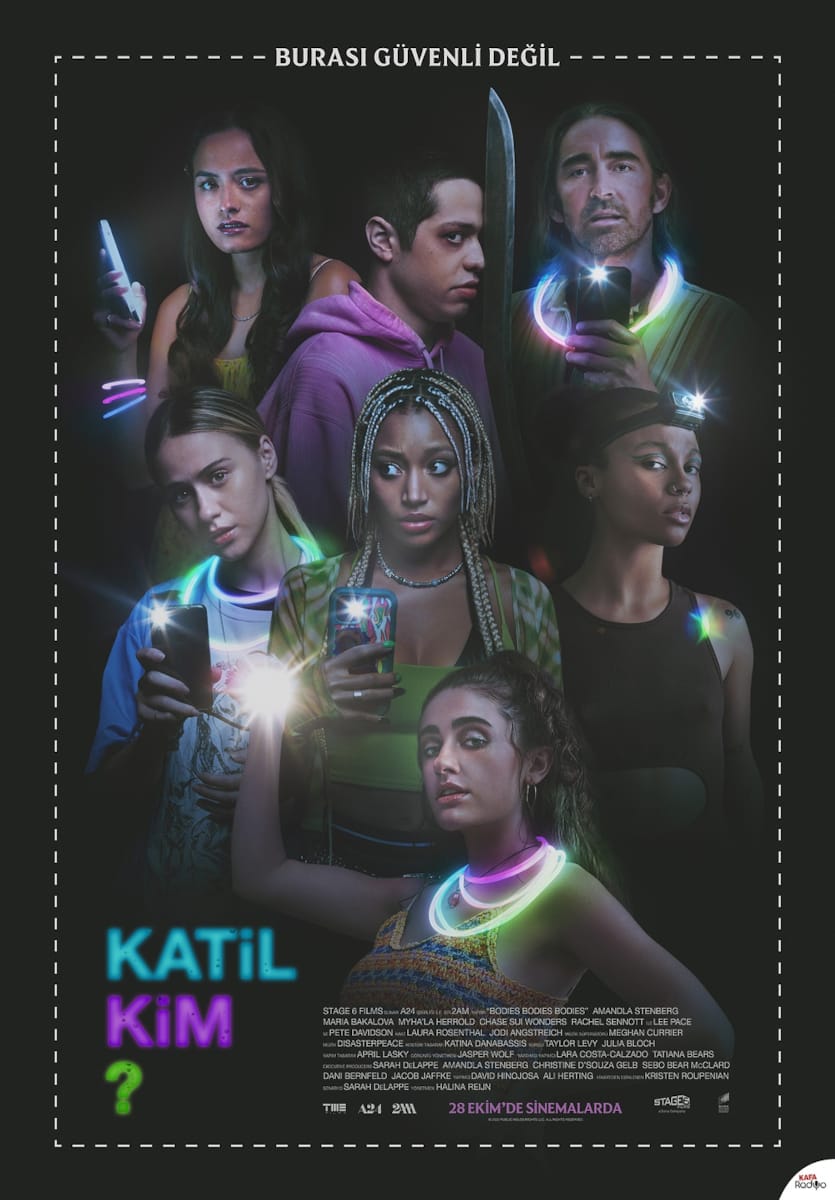 Korku filmi sevenlerin beğenisini kazanacak Katil Kim (Bodies Bodies Bodies), yirmili yaşlardaki bir grup zengin gencin başından geçenleri anlatıyor. Gençler, şehirden uzak bir evde, yaklaşan kasırga sırasında eğlenecekleri bir parti planlıyorlar. Fakat partide oynanan bir oyun beklenenden oldukça farklı şekilde ilerliyor. Film, birbirini arkadan bıçaklamaya, sahte arkadaşlıklara ve bir partinin yanlış gidişine yeni ve eğlenceli bir bakış sunuyor.