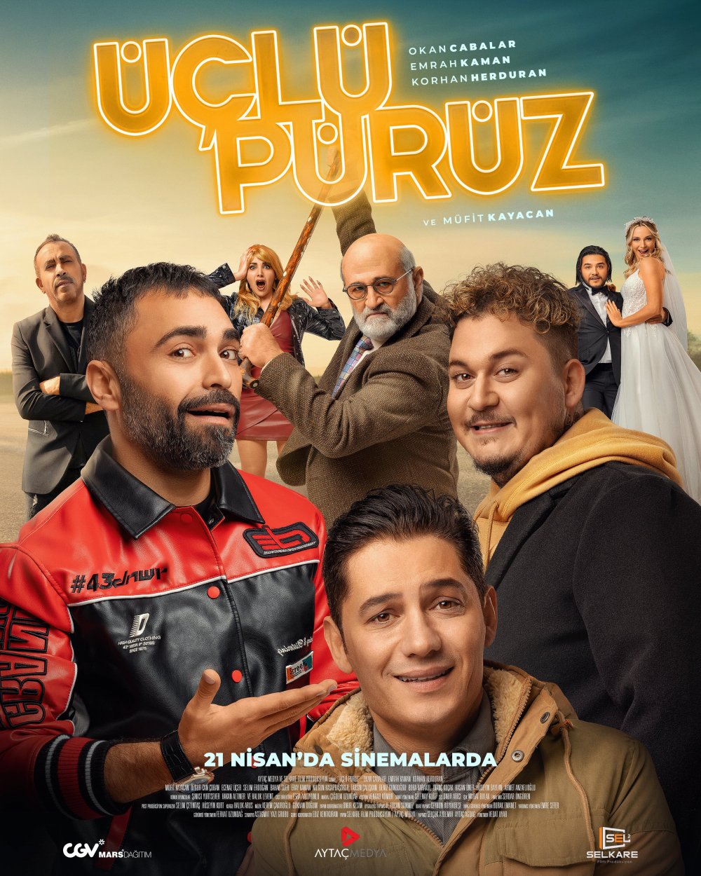 Filminin başrollerini Okan Çabalar, Emrah Kaman ve Korhan Herduran paylaşıyor. "Üçlü Pürüz"ün kadrosunda ayrıca Müfit Kayacan, Özgür Can Çoban, Ecenaz Üçer, Selim Erdoğan ve Bahar Süer gibi oyuncular da var.