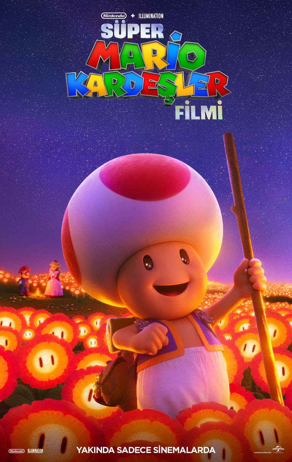 Yönetmen Aaron Horvath ve Michael Jelenic’in (Teen Titans Go!’da iş birliği, Genç Titanlar Filmi), senaryo Matthew Fogel (LEGO Filmi 2, Minyonlar: Gru’nun Yükselişi). Mario rolünde Chris Pratt, Prenses Peach rolünde Anya Taylor-Joy, Luigi rolünde Charlie Day, Bowser rolünde Jack Black, Toad rolünde Keegan-Michael Key, Eşek Kong rolünde Seth Rogen, Huysuz Kong rolünde Fred Armisen, Kamek rolünde Kevin Michael Richardson ve Spike rolünde Sebastian Maniscalco yer alıyor.