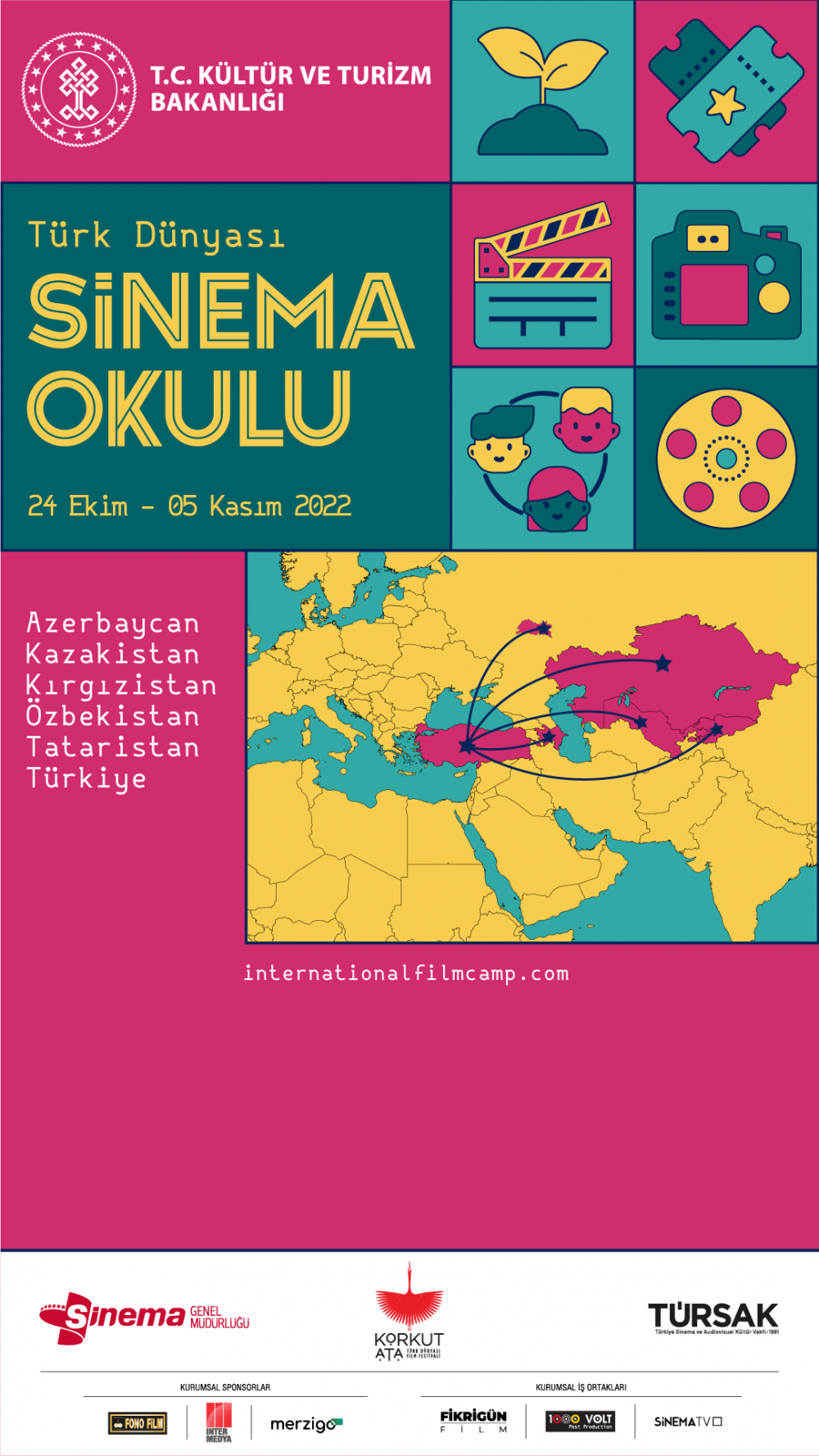 T.C. Kültür ve Turizm Bakanı Mehmet Nuri Ersoy’un katkılarıyla 1-5 Kasım tarihleri arasında “2022 Türk Dünyası Kültür Başkenti Bursa”da düzenlenecek Korkut Ata Türk Dünyası Film Festivali’nde “Türk Dünyası Sinema Okulu” etkinliği sinemaseverlerle bir araya geliyor. TÜRSAK Vakfı’nın gerçekleştirdiği “Türk Dünyası Sinema Okulu”, 24 Ekim-6 Kasım tarihleri arasında Türk dünyası ülkelerinden 10 genç sinemacıyı, çekecekleri belgesel film için Türkiye’de buluşturuyor.