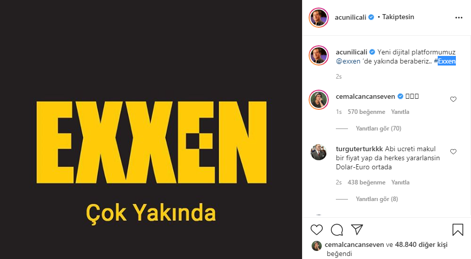 Ilıcalı, paylaşımında, 'Yeni dijital platformumuz Exxen'de çok yakında beraberiz' ifadelerini kullandı.