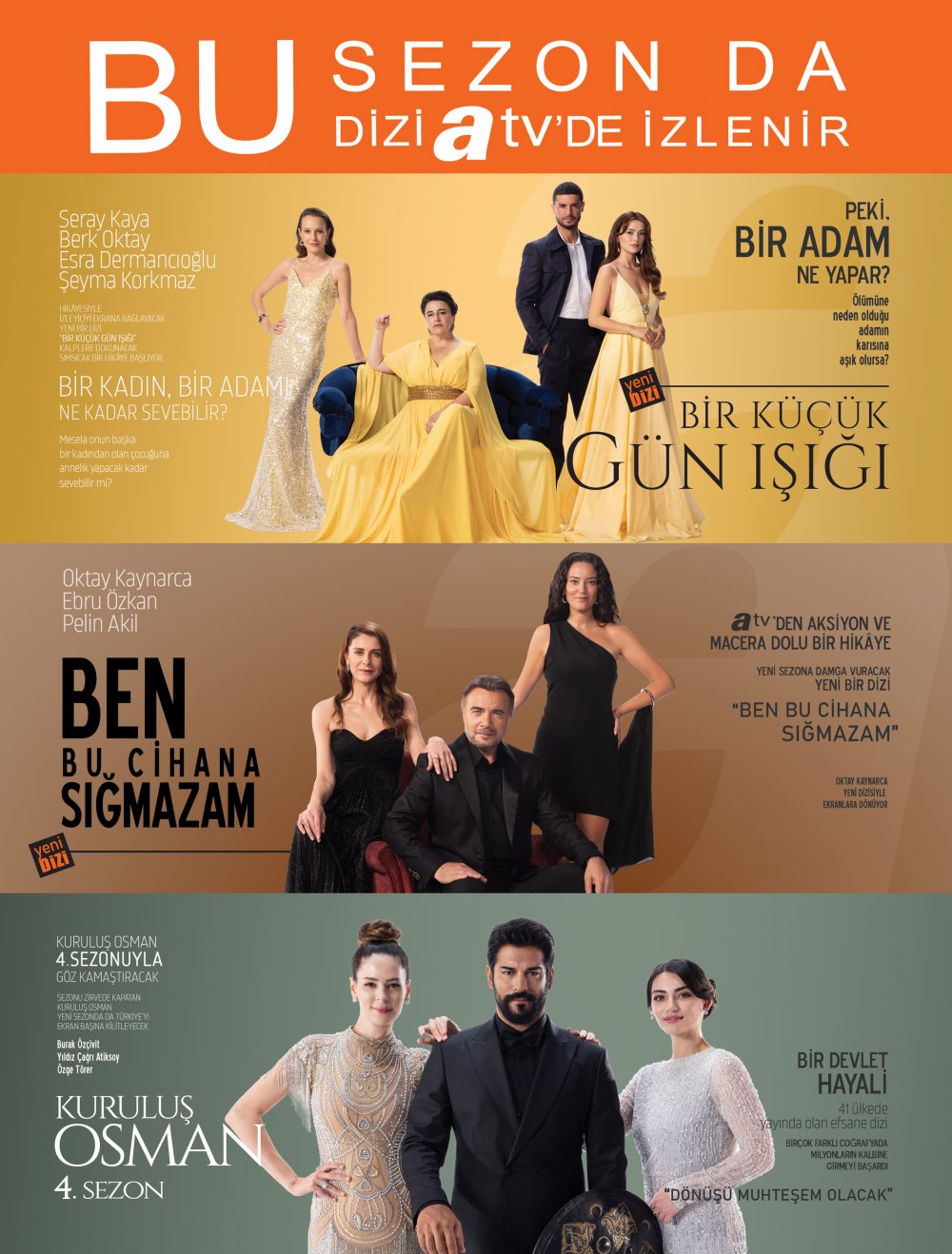 Yeni sezonla birlikte ekrana gelmeye hazırlanan üç yeni dizi Ben Bu Cihana Sığmazam, Aldatmak ve Bir Küçük Gün Işığı ise ilk kez atv tanıtımında izleyici karşısına çıktı.
