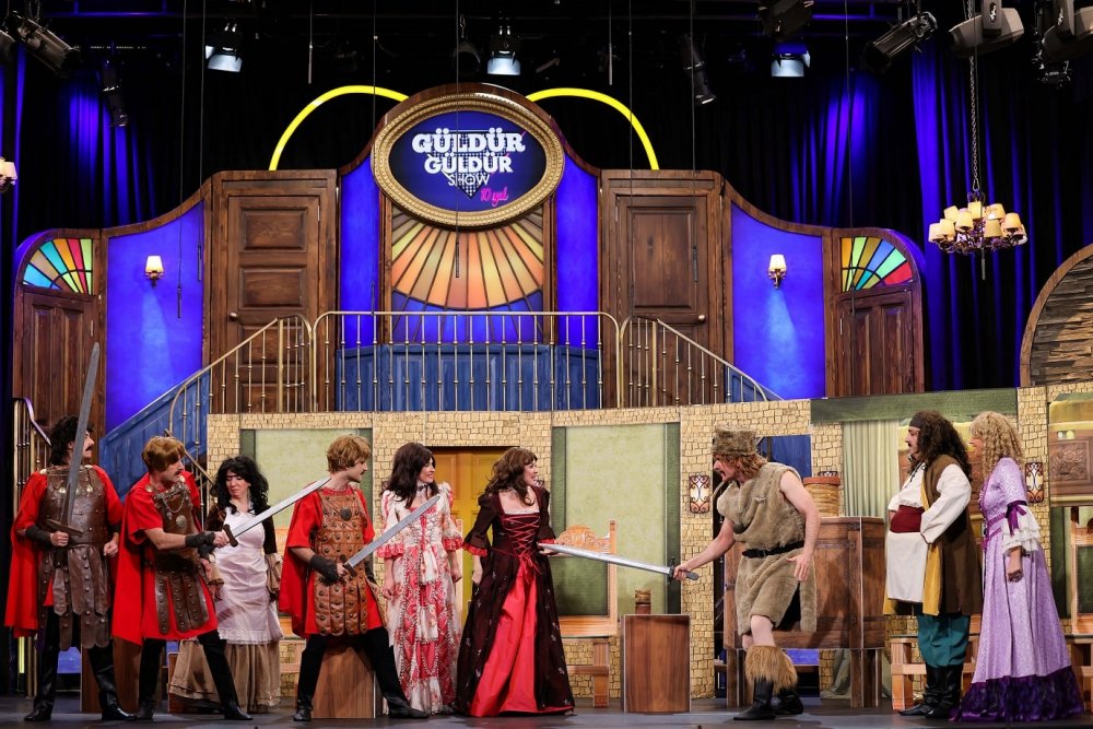 Yapımını BKM’nin üstlendiği, televizyon ve tiyatro tarihine adını altın harflerle yazdıran ‘Güldür Güldür Show’ Cumartesi akşamı 320. bölümüyle ekrana gelecek. Gündem yaratan skeçleri ve fenomen karakterleriyle ekranda kahkahanın tek adresi olmaya devam eden, Ali Sunal’ın moderasyonuyla ekrana gelen ‘Güldür Güldür Show’da Açelya Topaloğlu, Alper Kul, Aylin Kontente Kul, Aziz Aslan, Berkay Tulumbacı, Burak Topaloğlu, Doğa Rutkay, Erdem Yener, Giray Altınok, Gürhan Altundaşar, Hasibe Özlem Eren, İrem Kahyaoğlu, Mahir İpek, Meltem Yılmazkaya, Onur Atilla, Ömür Arpacı, Özgün Aydın, Özgün Bayraktar, Toygan Avanoğlu, Uğur Bilgin, Ünal Yeter izleyicilerin karşısına çıkıyor.