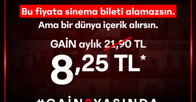 GAİN ikinci yaş gününü ve yeni yılı bir arada, özel bir kampanya ile kutluyor. Bu kampanya kapsamında 30 ve 31 Aralık’ta gerçekleştirilecek yıllık aboneliklerde aylık yalnızca 8,25 TL ödeme fırsatı sunuyor.