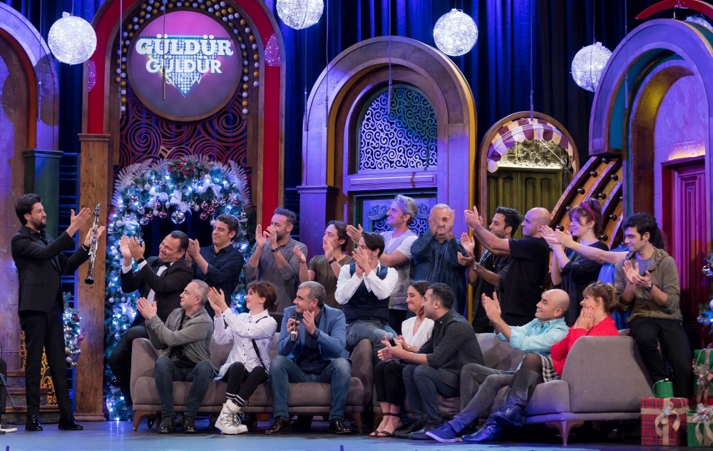 Güldür ekibi ise enerjiyi bir arada söyledikleri şarkılarla yükseltecek. Önce Serkan Çağrı Yalan Dünya türküsü ile evlerimize konuk olacak. Geri sayım öncesi ise heyecan artacak ve yeni yılın coşkusu evlerde “Güldür Güldür Yeni Yıl” şarkısı ile hissedilecek.