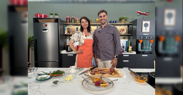 Ekin Şef’in Açelya Akkoyun için hazırladığı menüde imza yemeği olan tatlı patates püresi yatağında bonfile ve yanında glutensiz mercimek ekmeği yer alıyor.