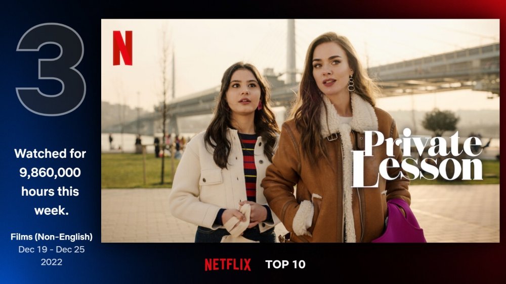 Netflix Türkiye'nin yeni filmi Özel Ders 2. haftasında da Netflix'in en çok izlenen filmler listesine girdi. https://top10.netflix.com/ üzerinden haftalık izlenme oranlarını açıklayan platform, 19-25 Aralık haftasının verilerini de yayınladı.