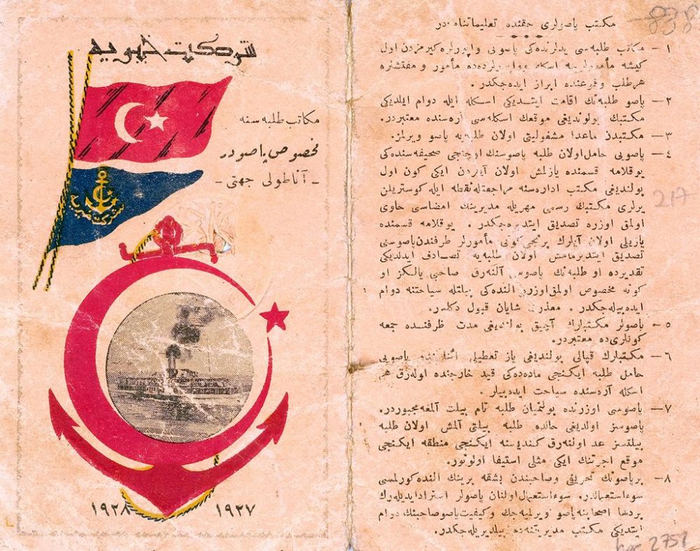 Abdülhamid döneminden Cumhuriyet’e uzanan ders kitapları, karneler ve diplomalar ile harf devrimi sonrası alfabeler, okul sıraları, öğrenci önlükleri, karatahtalar ve tebeşirler…