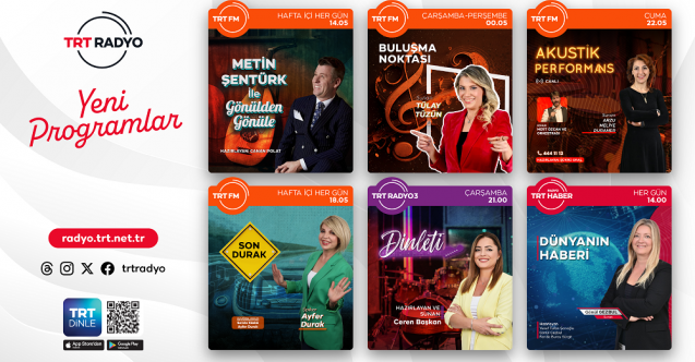 Farklı formattaki yayınlarıyla tüm dinleyicilere hitap eden TRT Radyoları, özenle hazırlanan yeni içeriklerini dinleyicileriyle buluşturuyor.