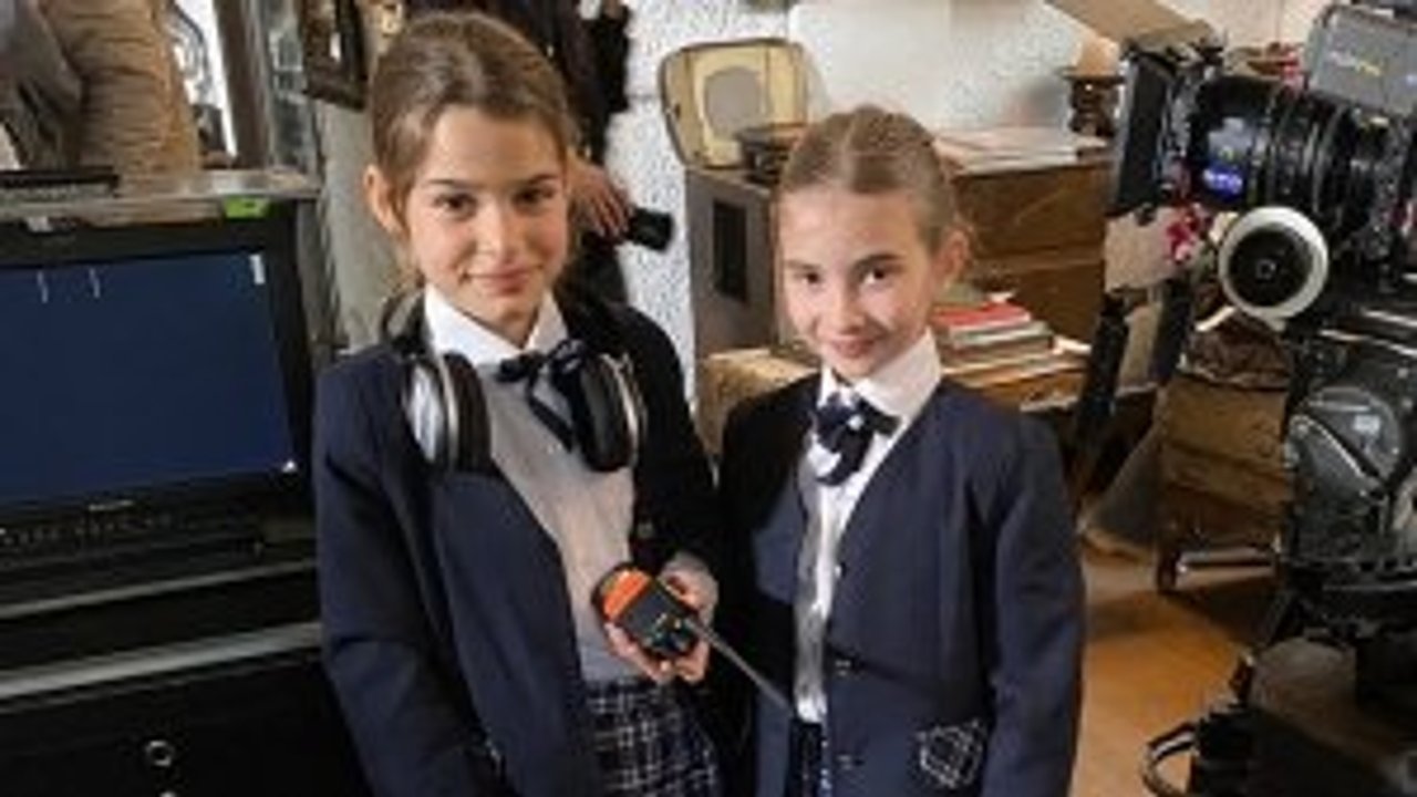 Dizinin yönetmeni Mesude Erarslan, koltuğunu dizinin çocuk oyuncuları Lavinya Ünlüer ve Bahar Ece...
