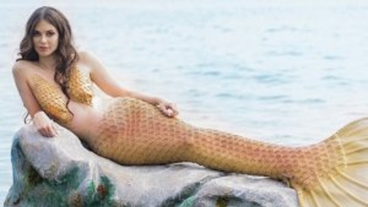 Deniz kızı olarak izleyici karşısına çıkan Talu yer aldığı sahnede denizin içinde bir kayanın üzerinde uzanıyor.